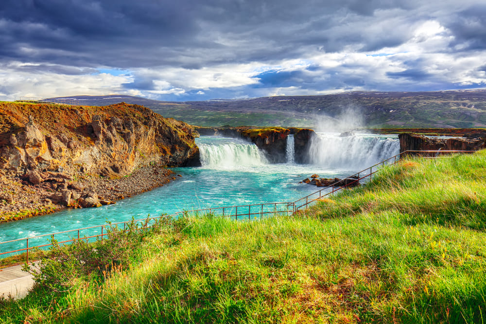 Next, you will visit one of Iceland’s most iconic waterfalls, Goðafoss - the Waterfall of the Gods. Here you’ll have time to walk along the viewing paths, take photos and admire the powerful turquoise water cascading into the canyon below.